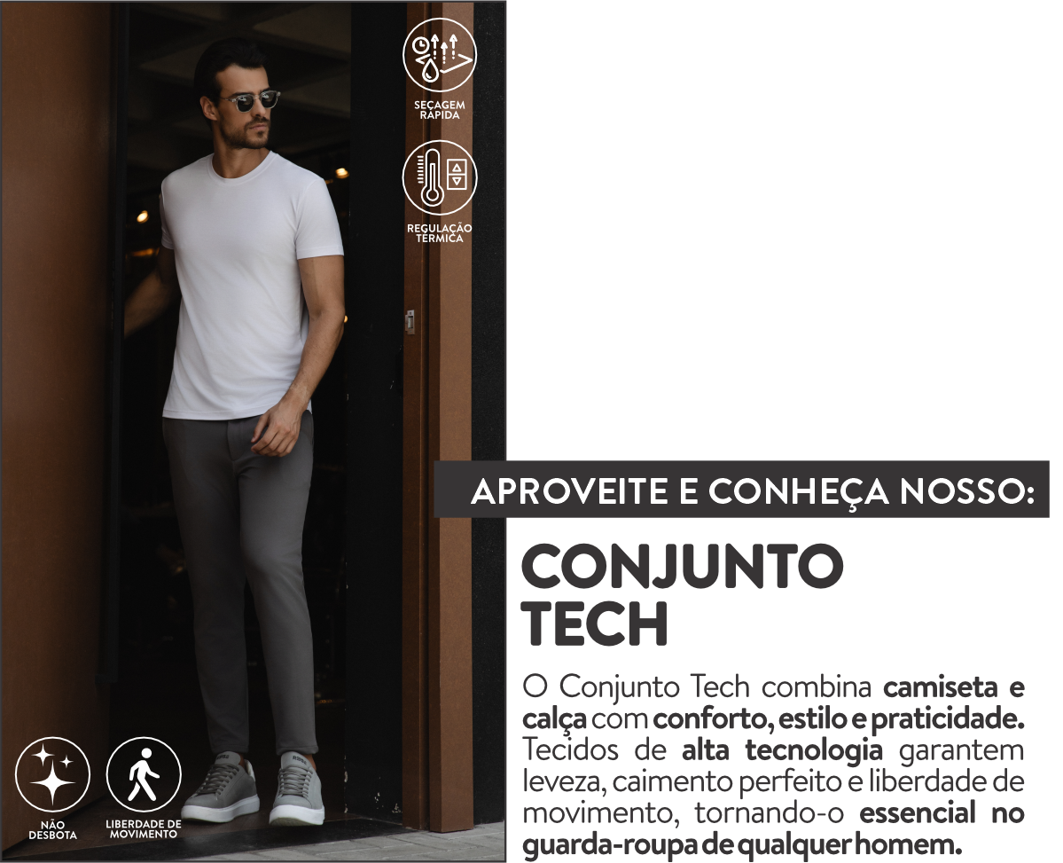 Feita em tecido tecnológico de modal com elastano entrega toque macio, caimento perfeito e respirabilidade: tudo em uma peça que une conforto, desempenho e estética moderna.